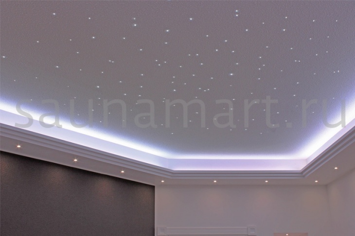 Комплект подходит для создания звездного неба среднего размера. Волокна - подходят для турецких и инфракрасных бань с температурой ниже 80°C. Проектор оснащен эффектом мерцания, воспроизводящим тихое мерцание звезд. Эффект мерцания близок к натуральному звездному небу, со звездами, которые горят слегка ярче и тускнеют без регулярного ритма. Источник света - белые светодиоды. Комплект включает проектор и волоконный жгут. Диаметр волокна 0,75 мм. Количество и длина волокон: