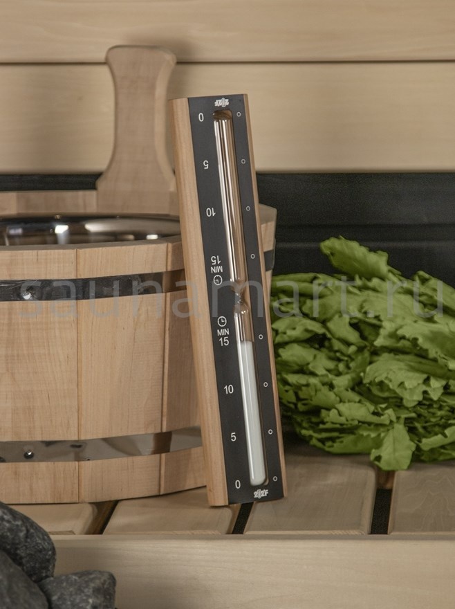 Что нужно для правильного посещения бани? Конечно, точный расчет времени банных процедур. Именно для этого были изготовлены песочные часы для бани и сауны. По рекомендациям врачей 15 минут - это идеальное время нахождения в парилке, именно на такую длительность рассчитан песок в часах. Часы песочные для бани должны всегда висеть на видном месте. На корпус из натуральной древесины наложена пластина из нержавеющей стали с нанесением графичной временной шкалы, в колбе и жаропрочного стекла размещен белый песок. Вам легко будет отслеживать свой индивидуальный режим парения. Банный аксессуар не боится высокой влажности и температуры, поэтому идеально подходит для использования внутри парной. Часы песочные для бани и сауны это одновременно и удобный хронометр и элегантная деталь, которая впишется в интерьер любой парной, а также убережет от перегрева и сделает банный отдых по-настоящему здоровым.