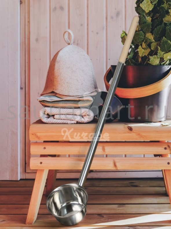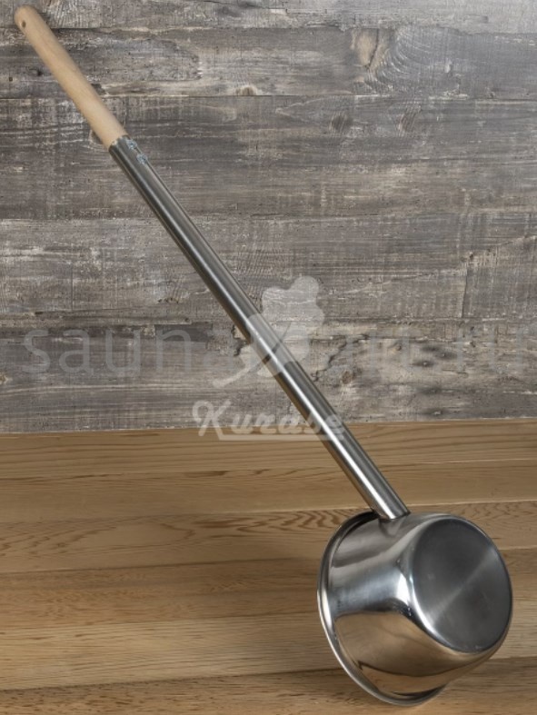 Объем 500 мл. Длина банного инвентаря 70 см, диаметр ковшика 12 см. Ручка выполнена и дерева бук, низкой теплопроводности.  Длинная ручка позволит не приближаться к раскаленной печи.  Для максимальной защиты рук от термического воздействия применяйте специальные войлочные рукавицы для бани. Металлическая часть ковша выполнена и полированной нержавеющей стали, что придает ковшу эстетичный внешний вид и предотвращает образование ржавчины, что значительно увеличивает срок службы изделия.