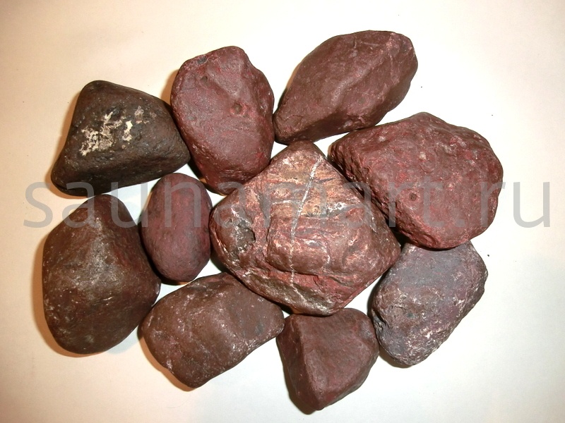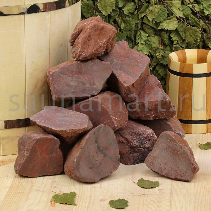 Яшма сургучная. Относится к полудрагоценным камням. Издавна использовали в бане только состоятельные люди. Отличные данные для использования в каменках. Имеет выраженные универсальные лечебные свойства. Народная медицина использовала яшму при лечении от болезней внутренних органов и сердца. Кроме того, она помогала излечивать многие женские и психические заболевания. Хороша от бессонницы, при заживлении ран и остановке кровотечения.