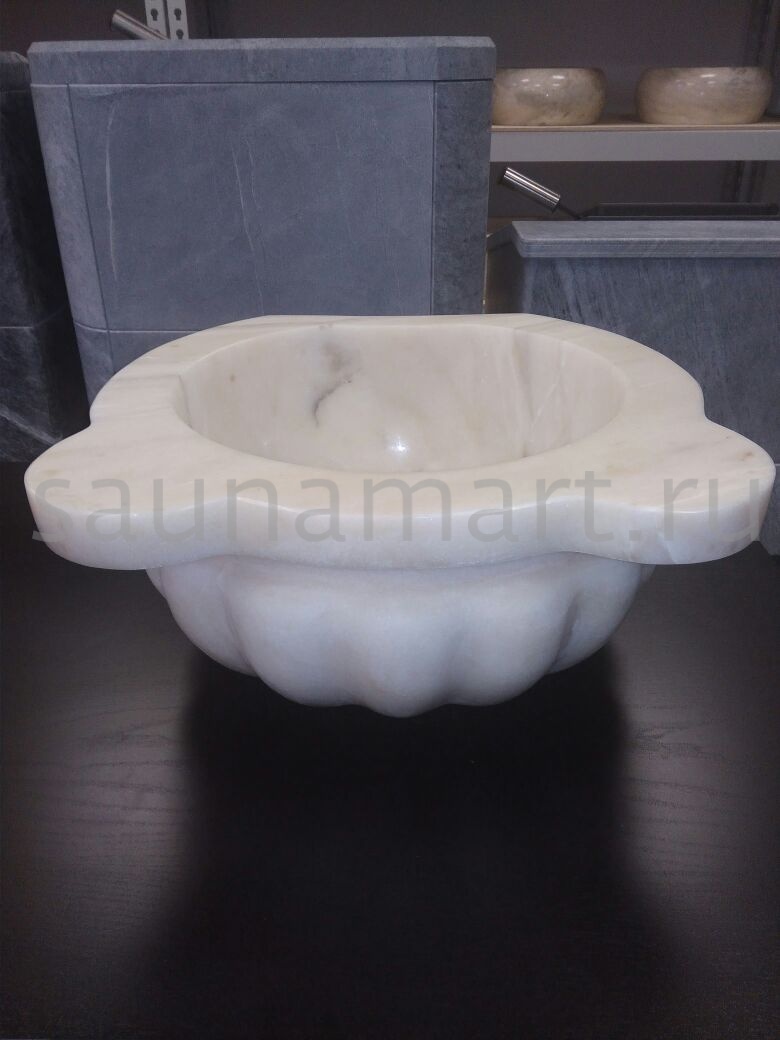 Курна – элемент интерьера турецкой бани, она используется для омовения. В этот тип курны вода поступает напрямую из смесителя и выливается через слив. Мраморная чаша устойчива в условиях повышенной влажности, а это значит, что она прослужит Вам долгие годы. Курна КМ10 Камнирус имеет утончённую округлую форму и удобные выступы по краям. Она устанавливается вплотную к стене. Такая деталь сможет создать особую этническую обстановку и прекрасный микроклимат в Вашем хамаме.