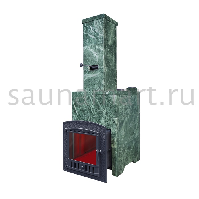 Облицовка «Классика Змеевик» для печи AVANGARD 24 М/П представляет собой верхнюю секцию высотой 790/40 мм из натурального змеевика. Печь оснащена 56-кг пароиспарителем с увеличенной рабочей площадью и системой рассекателя пламени для оптимального нагрева.