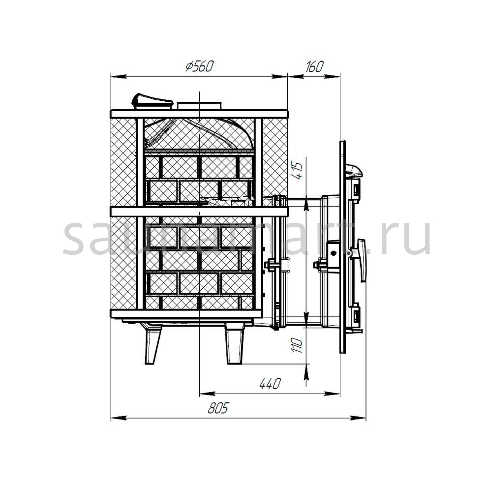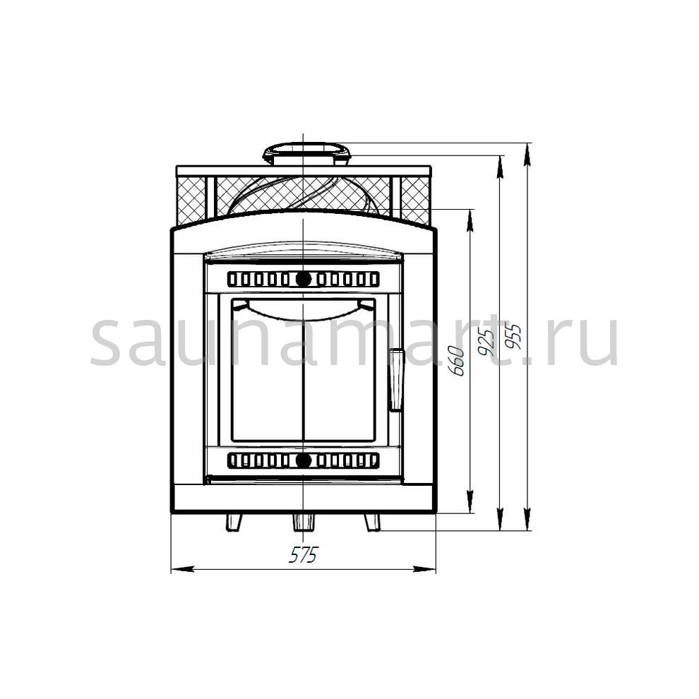 Компактная и экономичная модель. Кожух печи изготовлен в виде сетки из стали и полностью заполняется природными камнями, обеспечивая высокую динамику нагрева парильного помещения.