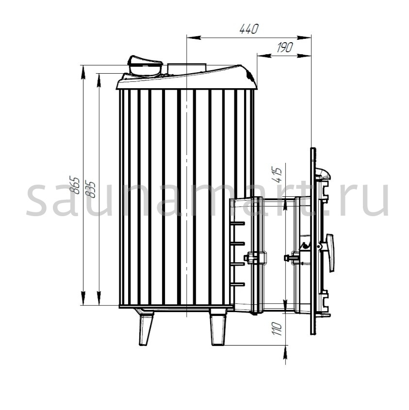 Модель с увеличенной каменкой и повышенной производительностью. Ламели, расположенные по периметру внешней каменки, не только обладают хорошими теплонакопительными свойствами, но и придают печи оригинальный внешний вид.