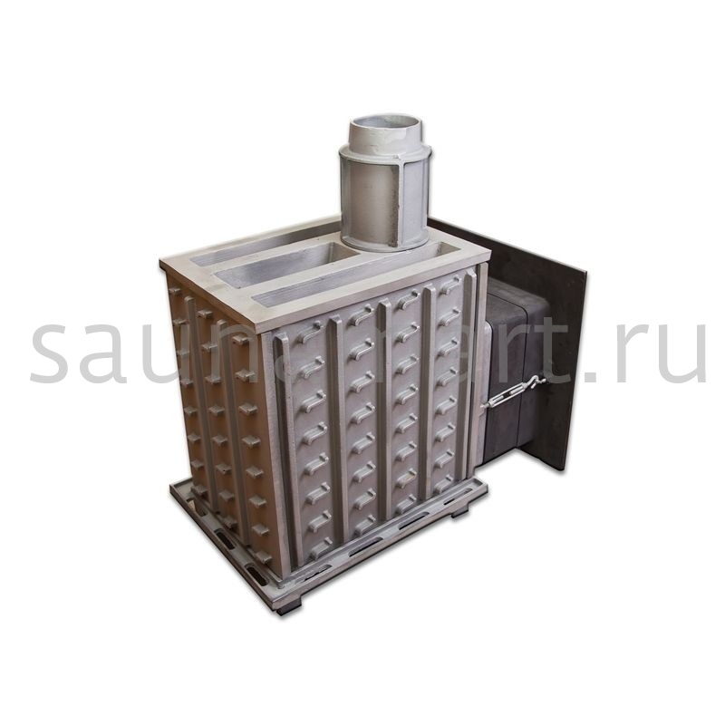 GFS-ЗК 25 — это печь с усиленной каменкой большей массы, с единым углублением внутрь топки для дополнительной укладки чугунного заряда. Теплосъемные шипы, со стороны горения пламени, в разы увеличивают площадь соприкосновения огня с каменкой и ускоряют передачу тепла, а также способствуют лучшему дожигу, смешивая потоки пламени и воздуха, поступающего из воздушника. Эти усовершенствования значительно повышают мощность парообразования печи и выдают большее количество пара при непрерывной подаче воды. Каменка печей GFS-ЗК является незаливаемой.