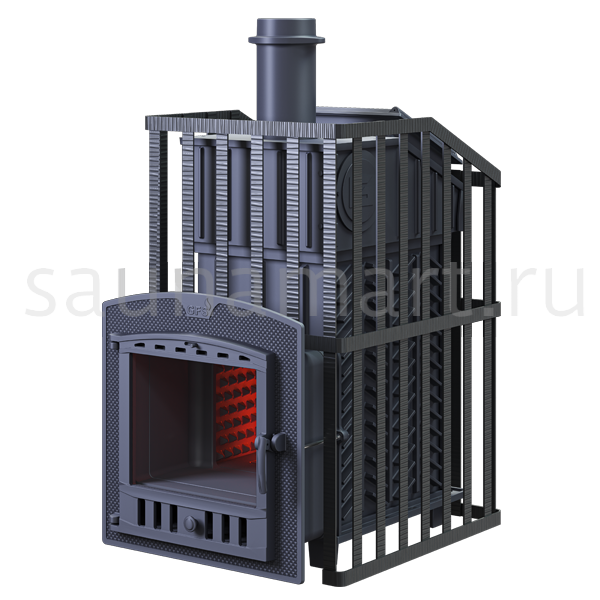 GFS ЗК 30 (П) Ураган представляет собой расширенный комплект печи в сетке. Это максимально приближенный вариант печи для режимов русской парной, имеющий закрытую каменку, защищенную чугунным коробом, и дверцу для пара с ручкой из бука. Печь легко модернизируется до полноценной печи, предназначенной для русской бани, путем замены стальной сетки на каменную облицовку без демонтажа дымохода.