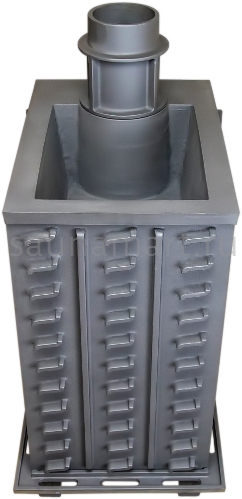 GFS ЗК 30 (П2) в сетке - печь с усиленной каменкой большей массы, с единым углублением внутрь топки для дополнительной укладки чугунного заряда. Теплосъемные шипы, со стороны горения пламени, в разы увеличивают площадь соприкосновения огня с каменкой и ускоряют передачу тепла, а также способствуют лучшему дожигу, смешивая потоки пламени и воздуха, поступаемого из воздушника. Эти усовершенствования значительно повышают мощность парообразования печи и выдают большее количество пара при непрерывной подаче воды. Каменка печей GFS-ЗК является незаливаемой.