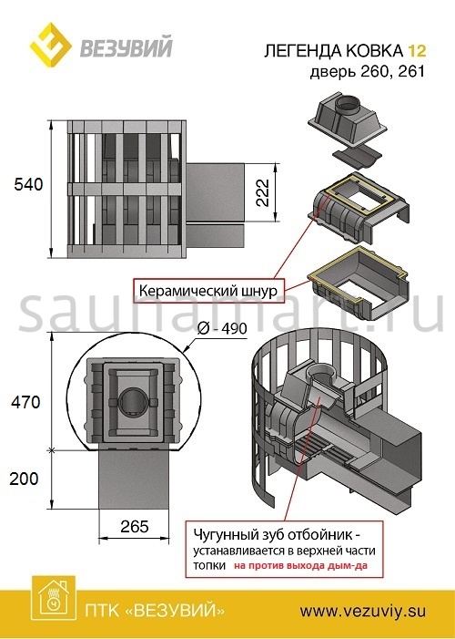 Печь дровяная ВЕЗУВИЙ Легенда ковка12 дверца 261