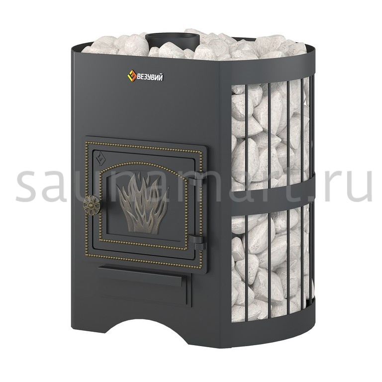 Воздух в зону горения подаётся через поддувало, его количество регулируется зольным ящиком совкового типа. Открытый зольник усиливает горение, закрытый – замедляет его. Чугунный пламегаситель перенаправляет поток горячего воздуха и дымовых газов к задней части топки. Это позволяет снять с печи максимум энергии в единицу времени. Чугунная дверь при нагревании не деформируется, сохраняет свою форму при остывании и предотвращает попадание продуктов горения на пол перед топкой. Печи Везувий СКИФ оснащаются сетками для камней. Сетки могут быть сделаны из металлического прутка или кованой стальной ленты шириной 40 мм. В сетки по всей высоте укладываются камни для бани, обеспечивая большой объём заклада и длительное удержание тепла после прогрева каменки.
