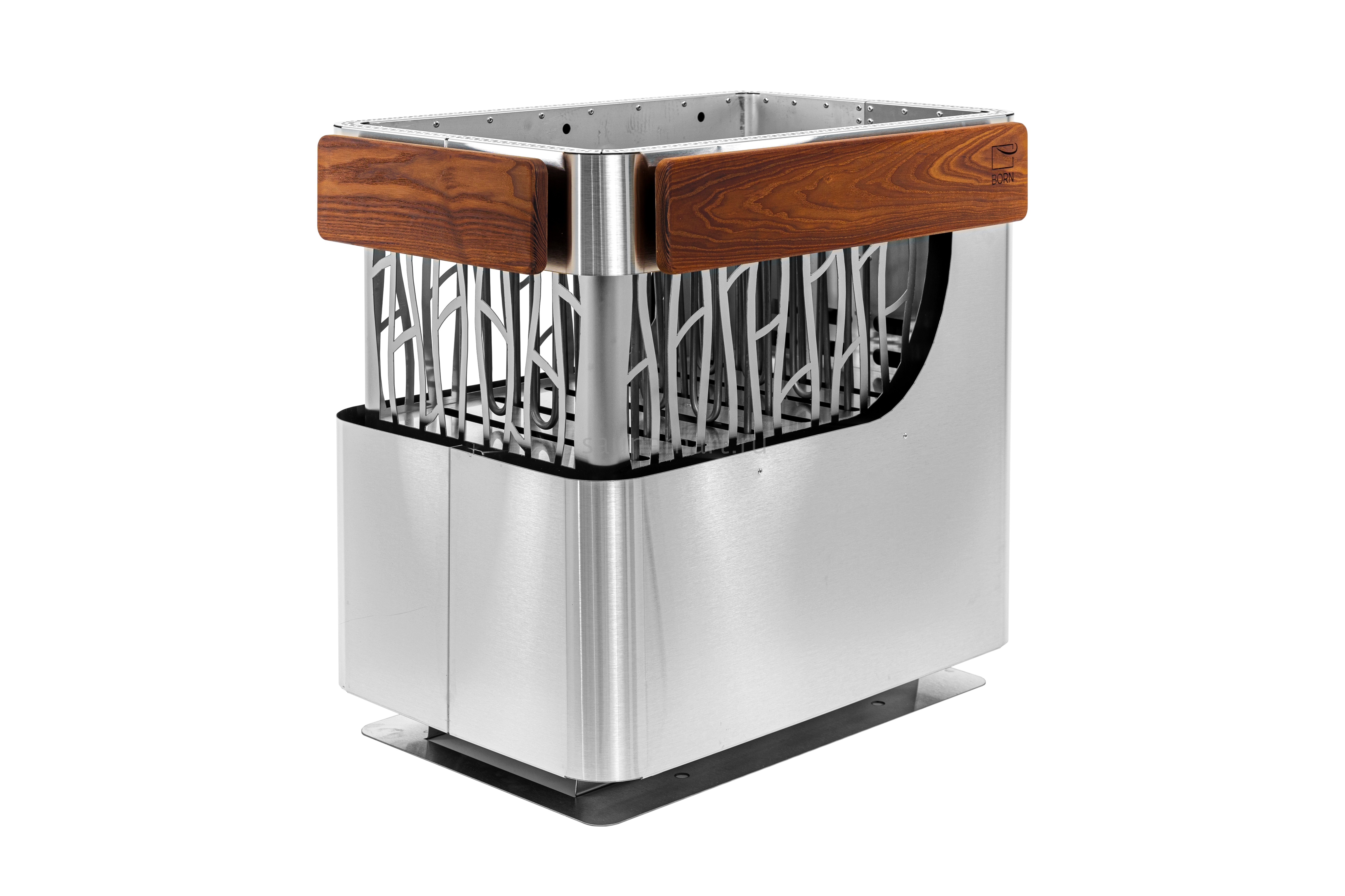 Каменка BORN Stone — это стильный внешний вид и незабываемые ощущения после использования. BORN Stone предназначена для обогрева больших семейных или общественных саун, создавая мощный, и в то же время мягкий источник тепла, который дарит незабываемые впечатления от русской бани. Корпус полуоткрытый. Комбинированные стенки корпуса выполнены в виде решетки из нержавеющей стали AISI 304, за которой хорошо видны камни. В печь вмонтирован ионизатор воздуха с кварцем и гималайской солью, вода испаряется от жара тэнов и увлажняет воздух, делая условия в парилке более комфортными.