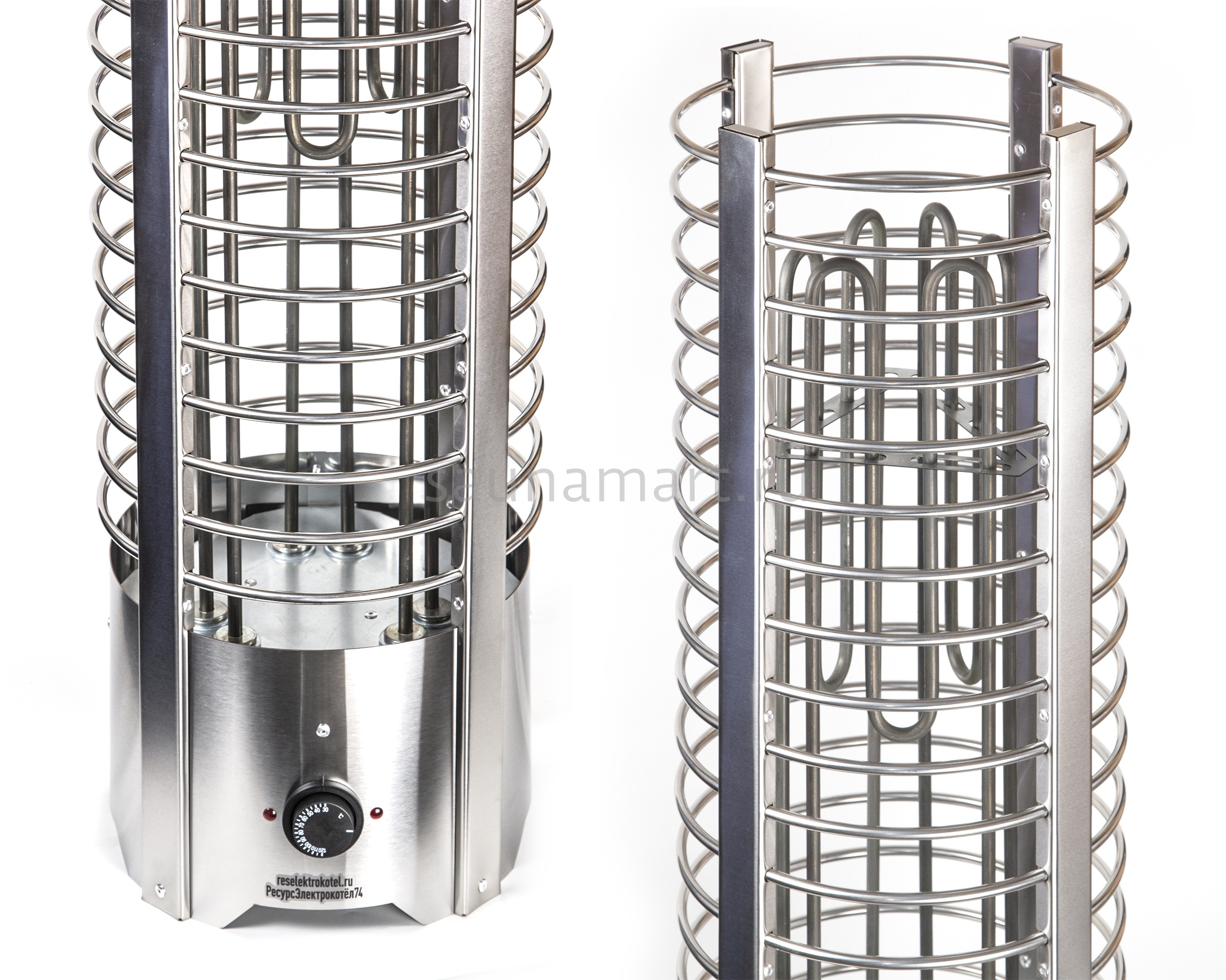 - Надежная циркуляция воздуха между ТЭНами и высокая теплоотдача каменки во все стороны.