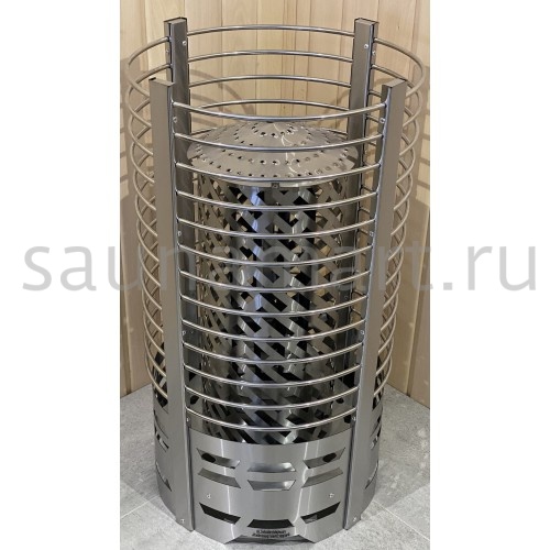 Печь оснащена встроенным механическим терморегулятором. Нагревательные элементы (ТЭНы) выполнены из нержавеющей стали. Вариант размещения - напольный, требует установки на негорючую поверхность. Каменка открытого типа с фронтальной загрузкой камней. Пароиспаритель отсутствует - пар образуется при ручном поливе камней. Комплектуется защитным экраном и термостойким кабелем.