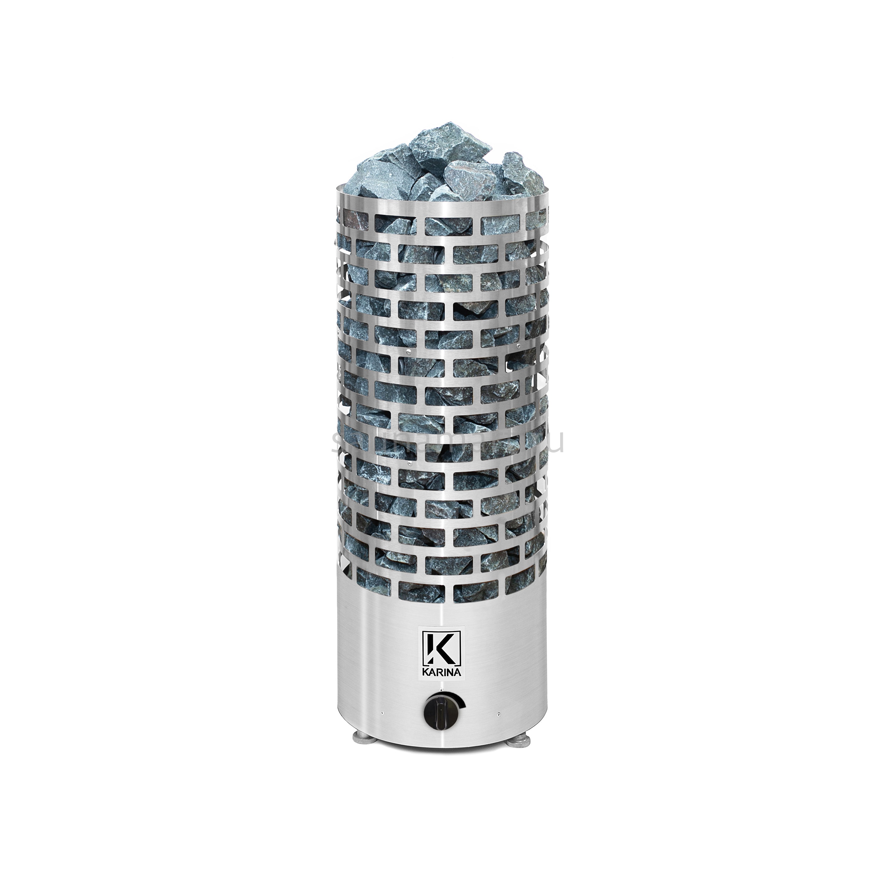 Электрокаменка Karina Nova 6 предназначена для использования в парных объемом до 8 м3. Печь выполнена в напольном варианте цилиндрической формы со встроенным на корпусе регулятором температуры. Напряжение питания печи – 220/380В. Печь укомплектована 3 ТЭНами, расположенными в виде треугольника. Внизу печи - бак для воды емкостью 3 л, который является парогенератором. Выше парогенератора расположена емкость под мелкие камни или нержавеющие шары объемом 2.5 л, вмещающая 5 кг мелкого камня, называемая закрытой каменкой с воронкой для подачи воды и получения мелкодисперсного пара. Электрическая печь Karina Nova 6 многофункциональна, и при правильной эксплуатации она подойдет для любителей как финской сауны, так и русской бани.
