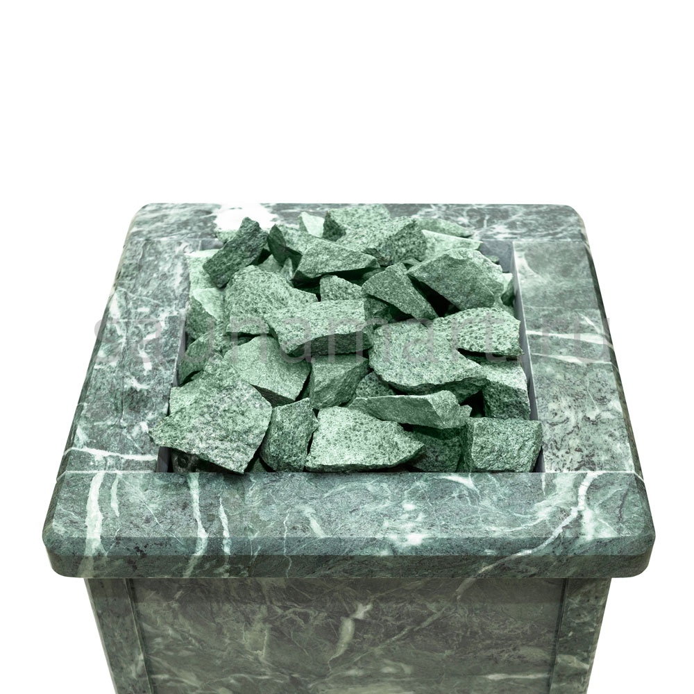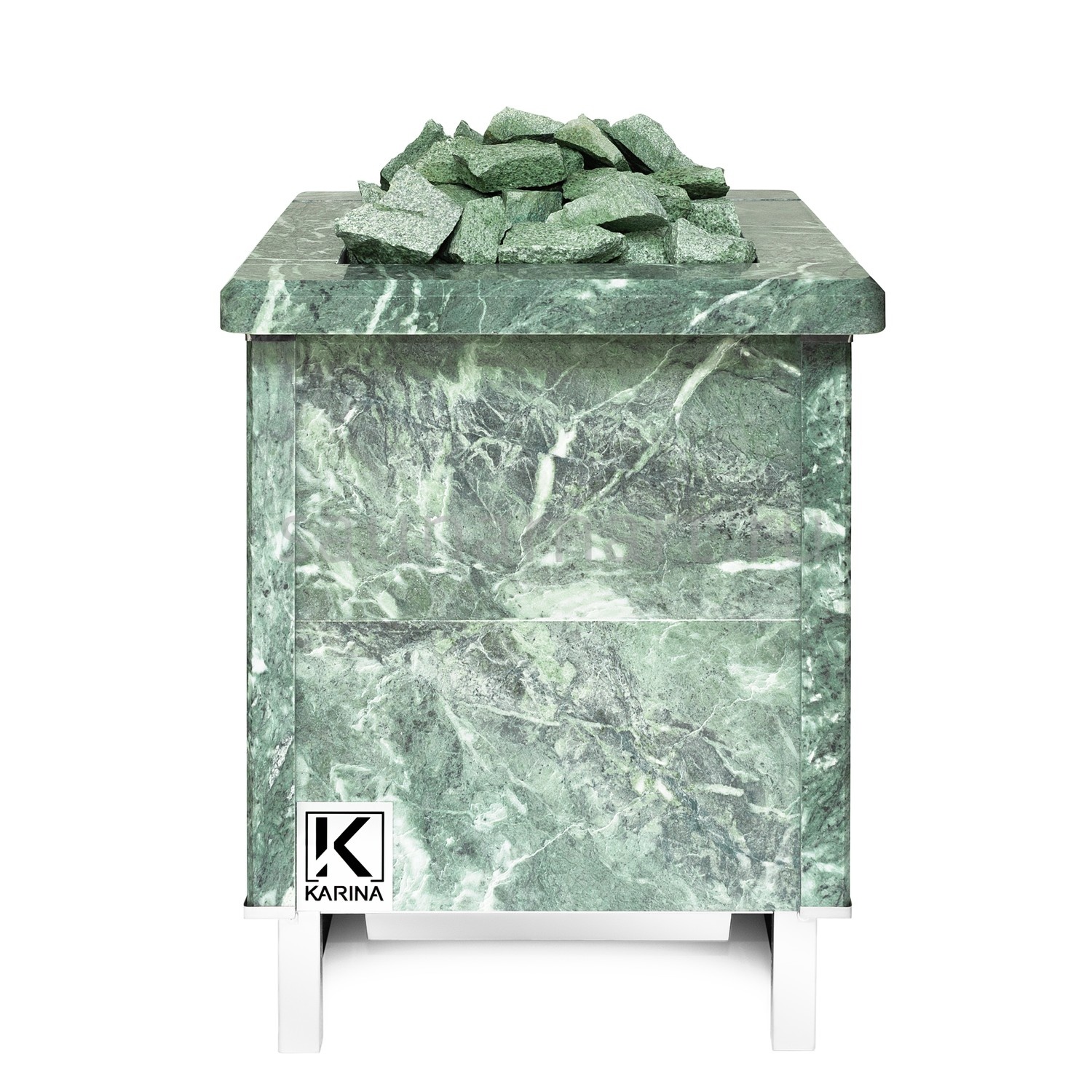 Электрическая печь KARINA Quadro 15 Змеевик — это профессиональная электрокаменка мощностью 15 кВт, полностью облицованная натуральным змеевиком. Модель разработана для эффективного прогрева коммерческих бань и саун объемом до 24 м?, сочетая в себе современные технологии и природные свойства натурального камня.