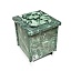 Электрическая каменка со всех сторон облицована натуральным змеевиком. Печь с подобным дизайном стильно смотрится в парильном помещении. Змеевик уже долгие годы используется для внутренней отделки бань. Его называют «аптекарским камнем» за его целебные качества. Минерал оказывает обеззараживающий эффект, положительно влияет на кости, оказывает успокаивающее воздействие и укрепляет иммунитет.