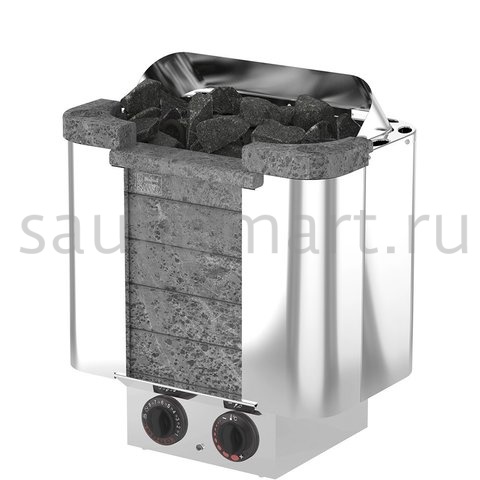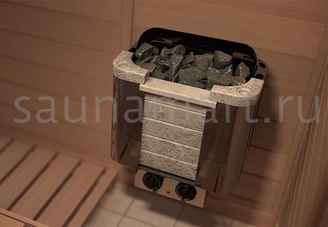Эргономичная, стильная и функциональная электрокаменка. Печь устанавливается навесным способом на стену. Основным материалом для производства финские инженеры избрали устойчивую к коррозии высококачественную нержавеющую сталь. Материал обеспечивает не только длительный срок эксплуатации, но и достойный внешний вид электрокаменки. Особой изюминкой печи CUMULUS CML-45NB является облицовка из талькохлорита фронтальной части печи. Сверху печь имеет 2 арома чаши из натурального камня, что непременно оценят любители ароматерапии. Электрокаменка вмещает в себя до 18 кг камней, которые вместе с талькохлоритной облицовкой массой 10 кг ускоряют прогрев сауны и снижают расход электроэнергии на поддержание нужной температуры воздуха. Подливая на камни воду или отвар из трав, вы быстро наполните парную большим количеством лёгкого мелкодисперсного пара. Управление осуществляется при помощи встроенной в нижнюю часть каменки панели управления.