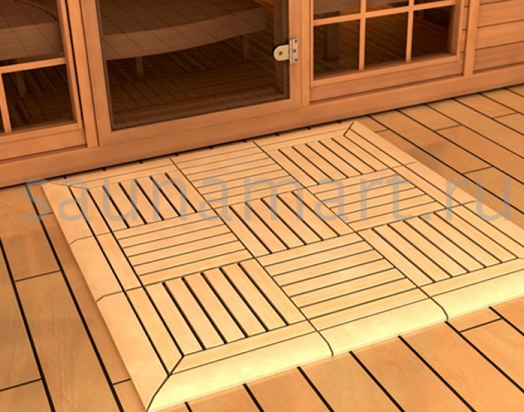 Sawo сборный деревянный коврик на пол идеально подойдет для вашей сауны, бани, душевой, комнаты отдыха и даже террасы. Коврики легко собираются в красивый кедровый настил по вашим размерам. Поверхность деревянных ковриков очень приятная для ходьбы босиком, структура кедра никогда не даст вам подскользнуться мокрыми ногами. Коврики прекрасно впитывают воду, их легко просушить или просто проветрить банное помещение.