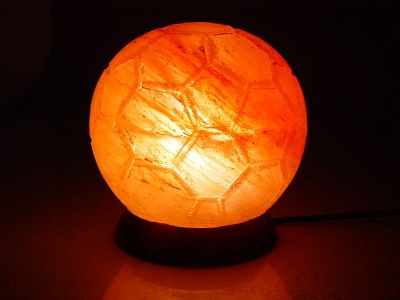 Фигурная лампа из Гималайской розово-красной соли в виде Футбольного мяча. Поставляется в подарочной коробке вес 2-3 кг.