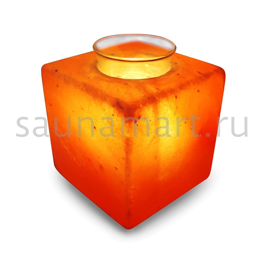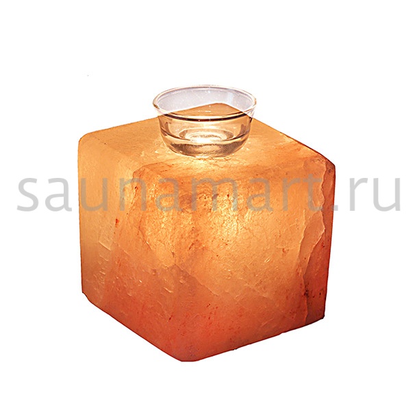 Лампа в виде Куба для арома-масел выполнена из Гималайской соли (Пакистан). Размер: 15,5*15,5*16,6