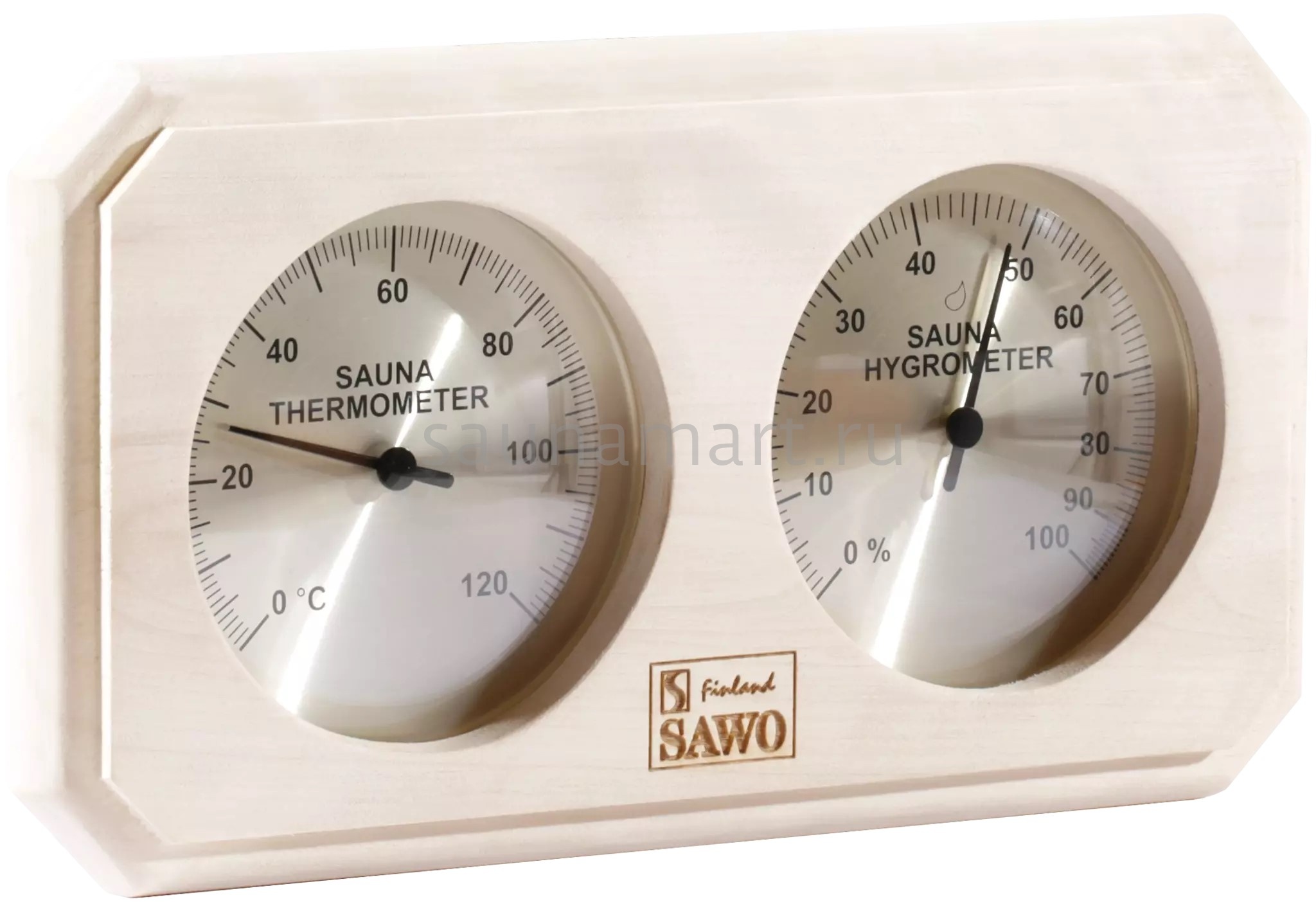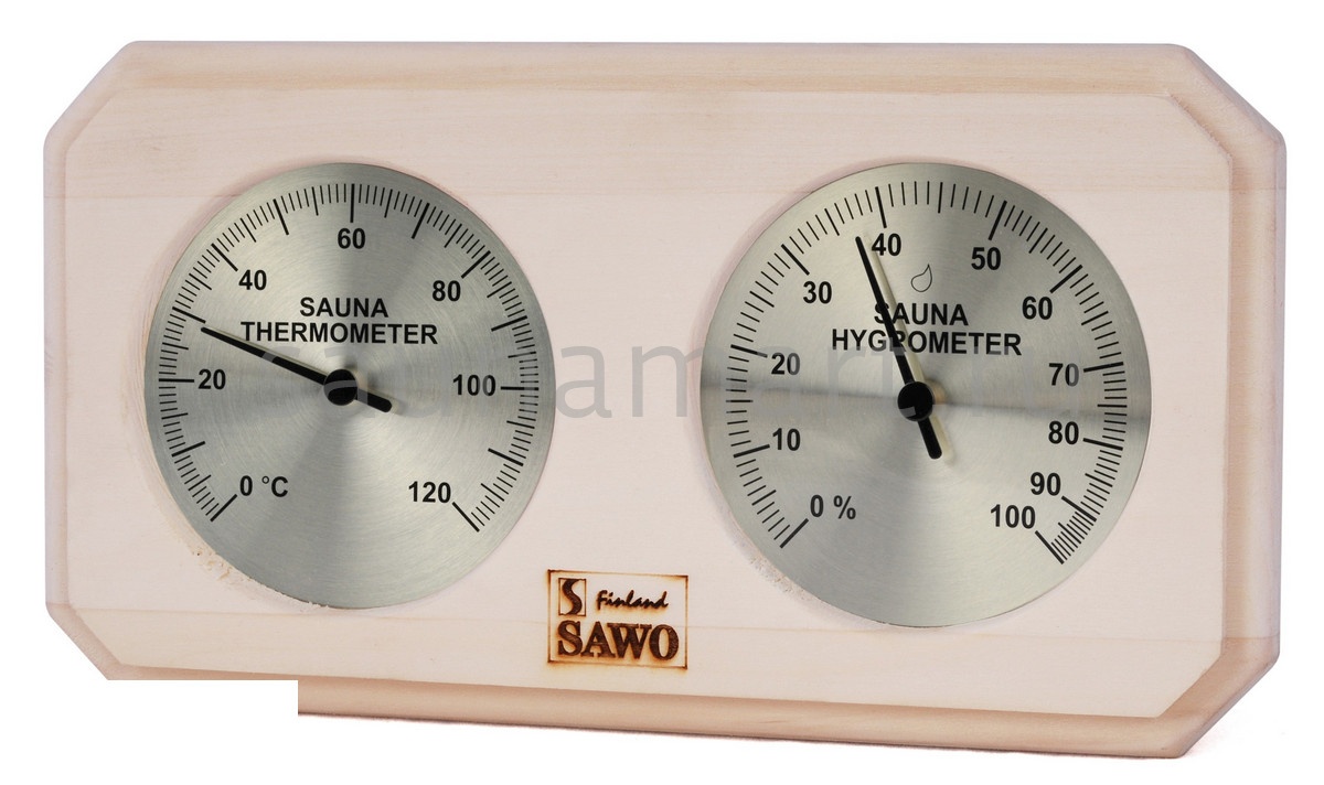 Термогигрометр SAWO 221-THА отличается надежностью, долговечностью и практичностью. Корпус прибора выполнен из осины, очень прочного материала, который не выделяет смолу и не впитывает влагу. В широкой раме из осины находятся два круглых циферблата под термостойким стеклом. Градуировка шкалы гигрометра варьируется в пределах от 0 до 100 %. Градуировка шкалы термометра варьируется в пределах от 0 до 120 градусов по Цельсию. Предусмотрена возможность калибровки прибора. Термогигрометр SAWO прекрасно впишется в интерьер любой бани или сауны и  удачно дополнит интерьер. Термогигрометр Саво подойдет для использования в любом парильном помещении, как в условиях русской бани, финской сауны так и хамама. Помните,  чтобы проведённое в парной время оказало благоприятный эффект на здоровье и самочувствие, необходимо тщательно соблюдать температурный режим парения и режим влажности. Высокий стандарт качества SAWO гарантирует надёжность и точность измерений термо-гигрометра.